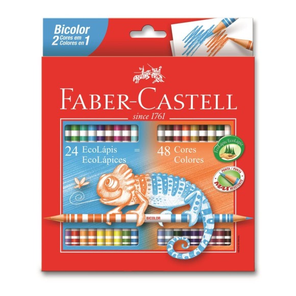 Lápis de Cor Faber-Castell 48 Cores – 24 Lápis Bicolor